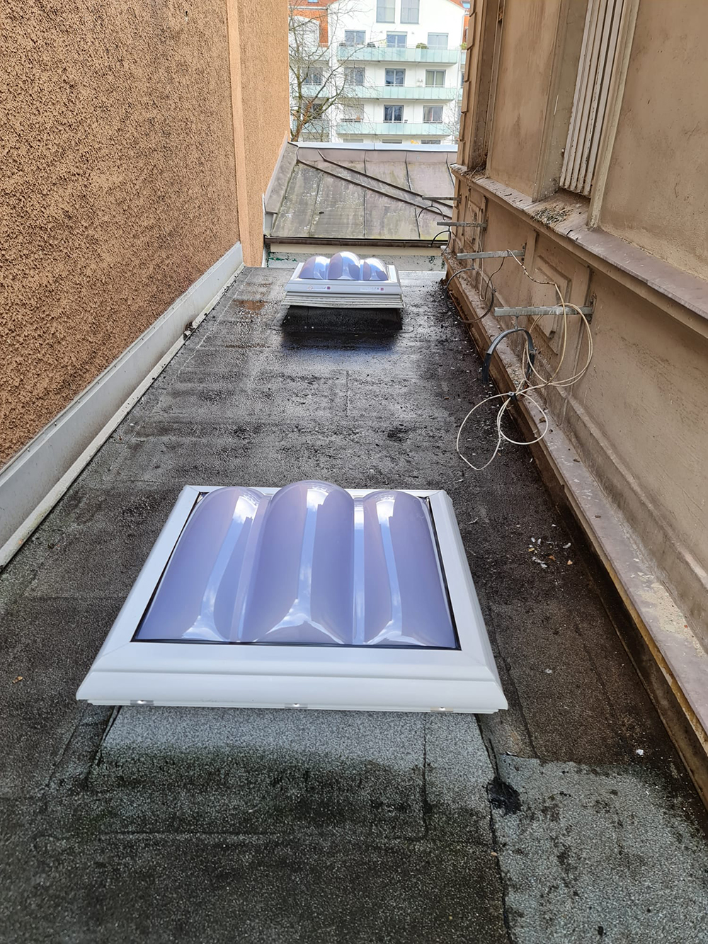 An Durchdringungen, Kanten, Lichtkuppeln oder Wandanschlüssen arbeiten wir besonders sorgfältig, da hier Undichtigkeiten am häufigsten entstehen.
