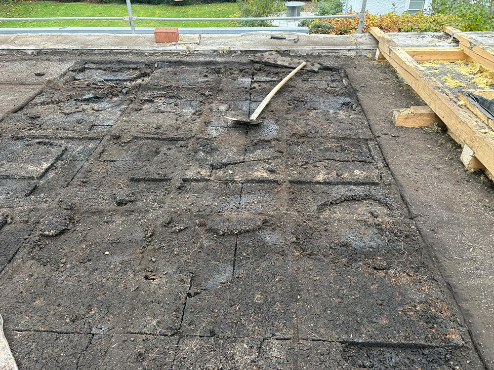 Auf Wunsch schützen wir die Abdichtung zusätzlich durch Kies, Plattenbeläge oder eine Dachbegrünung.