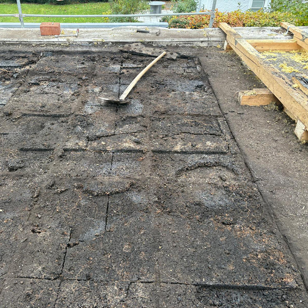 Auf Wunsch schützen wir die Abdichtung zusätzlich durch Kies, Plattenbeläge oder eine Dachbegrünung.